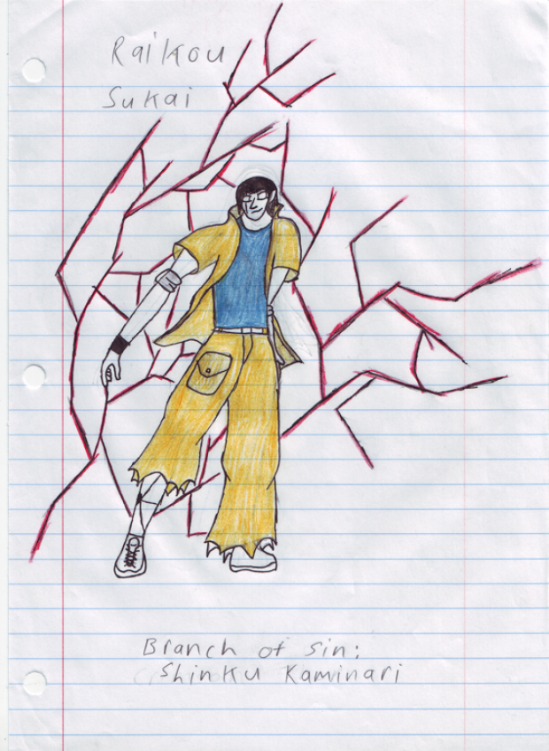 this is an oc of mine from deadman wounderland his real name is Victer last name unknown.His homeland is in cambodia and was sent to DW for the murder of over 69 MP solgers, he uses a power known as the banch of sin witch alows him to use his own blood as a weapon. Raikou's sin is called Crimson Thunder witch turns his blood into red lightning, the only flaw with Raikou is that he is blind but he uses his other sences to fight.