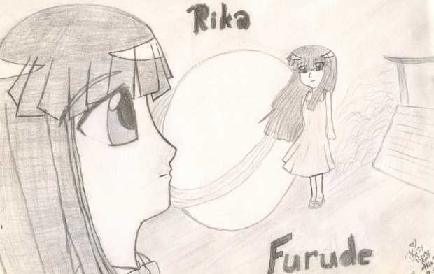 The picture of Rika Furude that I drew in art. Character from Higurashi No Naku Koro Ni, art work by me.