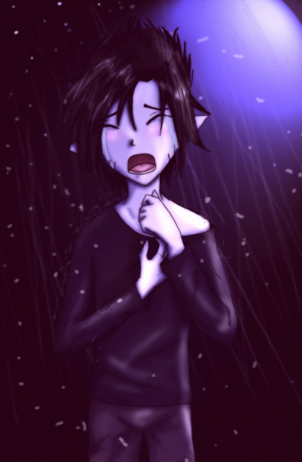 well Zylar was abused as a child but he never cried in front of anyone and he was always withdrawn so he didn't know how to react to certain things that would be considered sad. If he ever felt the need to cry since everyone must feel the need to just cry it out once in a while, he usually wandered off in his village in the rain so no one would see his tears. he was pretty good and just shedding tears and not making a huge crying scene out of it. here though, he needed to vent it out. *hugs him tight* my poor baby.