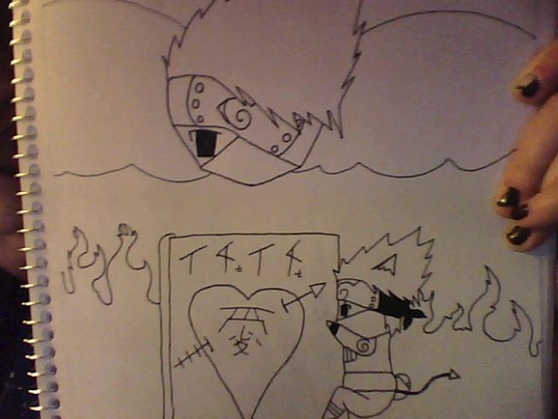 Kakashi's two personalities. The sweet, heavnly Kakashi...and the perverted Kakashi :,D