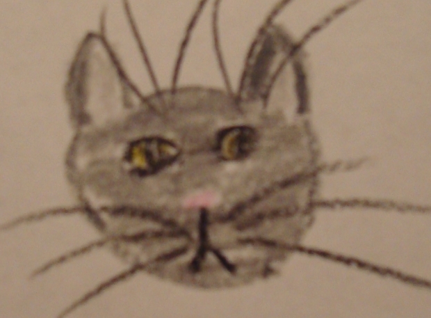 This is the awesome Dovepaw drawn in crayon. I just realized her eyes are the wrong color.