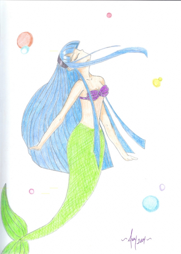 Like Umi power is water I love the idea of turning her into a mermaid. I used color pencil.