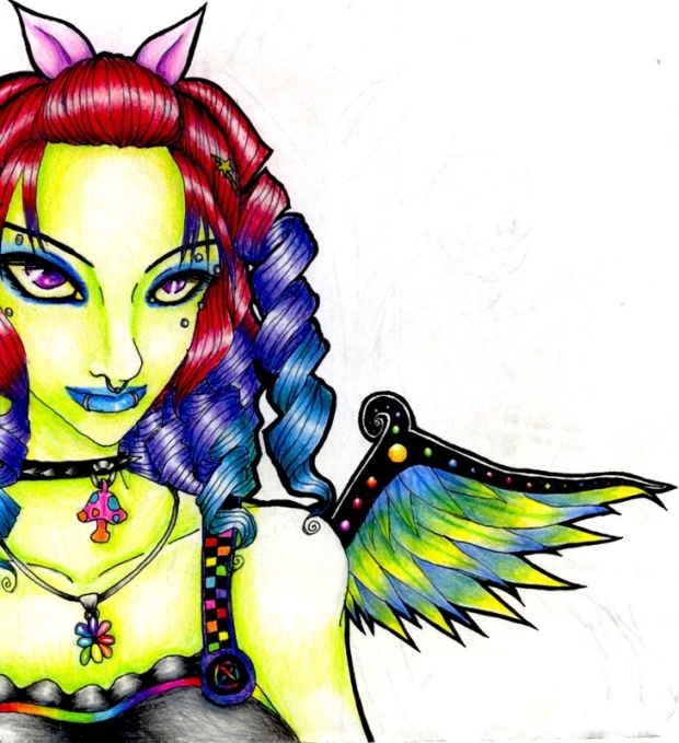 A piece I did randomly. I felt like giving her greenish skin and she ended up looking like an alien, so she's and alien with very pretty, pretty hair. I would love to be able to bleach my hair and fade it like that. Anywhom. An older piece since I am trying to update this place. It's been awhile since I've been here!