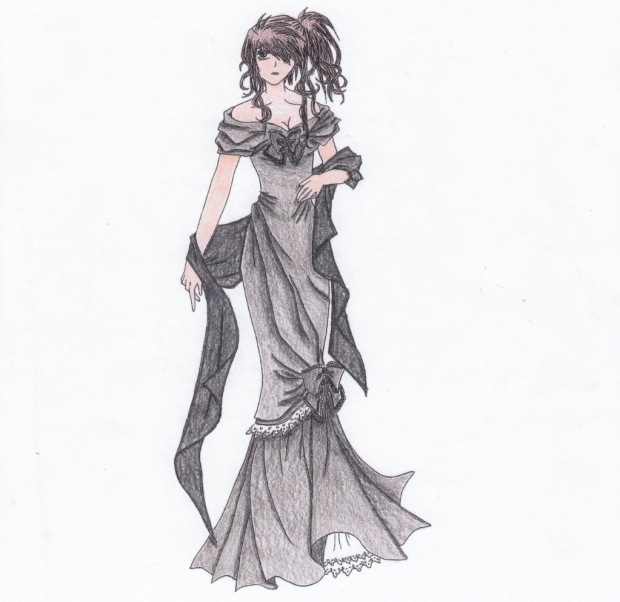 This is an art I drew for a character named Rukia, yes, the dress and the pose came from Christopher Hart's book Occult and Horror. I did this freehand, however so don't be all OH EHM GEEEZ YOU CHEETA....because I drew this by myself so don't even start with me.