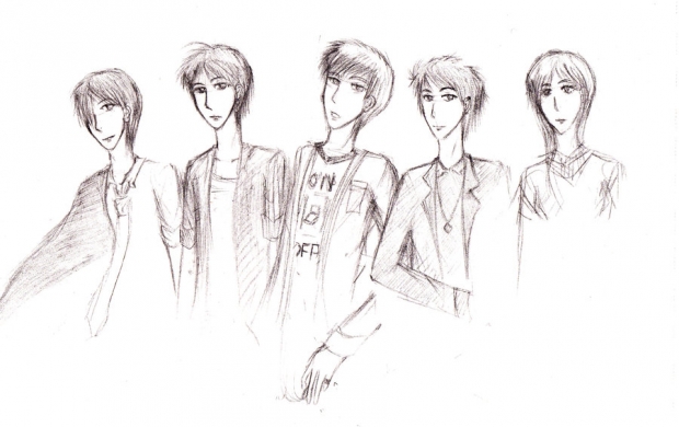 Some of my characters. Story's going under changes again, I drew this about three months ago? Anatomy is kind of weird but I just wanted to get them all fleshed out in terms of appearance.