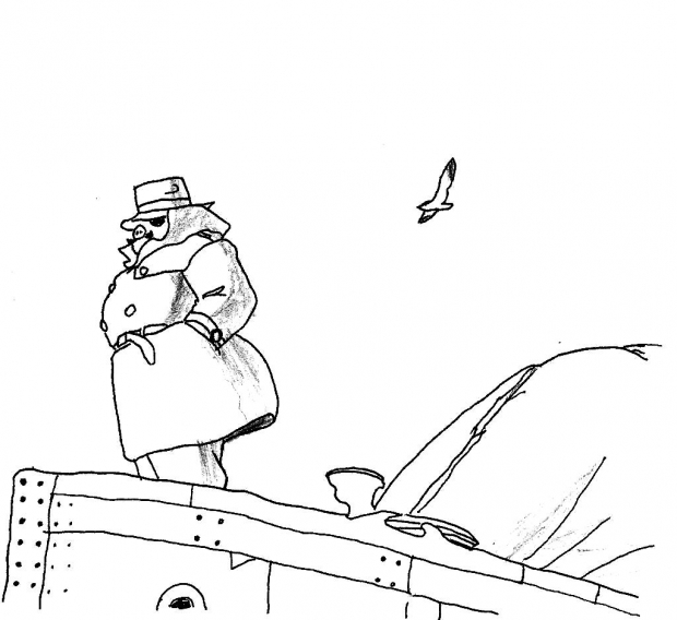 So the next in the Miyazaki sketch series come from Porco Rosso, a highly underrated movie in my opinion. This pictures is from fairly early in the movie and we have just witnessed a dogfight that has left Porco's seaplane in tatters. Looks like it's off to Milan for our intrepid hero. Also, the pictures no longer contain a border. I found the images "popped" off the page and appeared much more realistic.