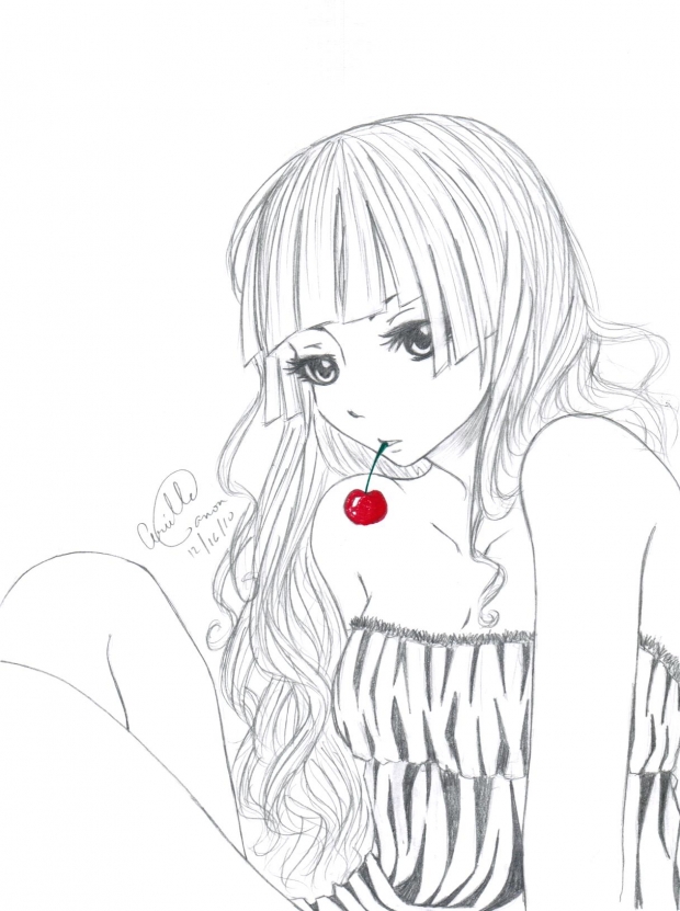 - antoinette, cherry, curly hair, queen kitty-chan, queenkittychan, red, sitting