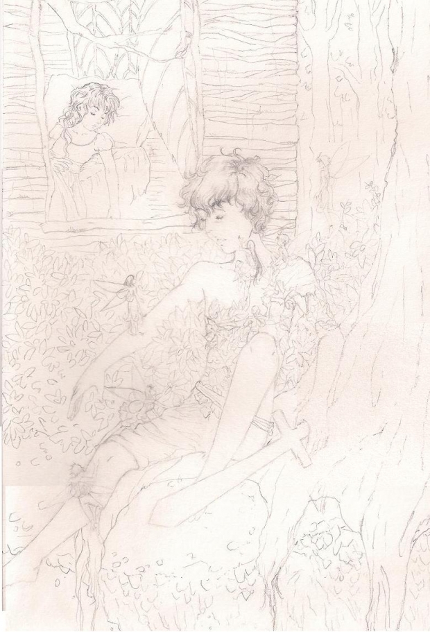 - fairies, forest, lineart, Neverland, Peter Pan, protect, sleep, Wendy