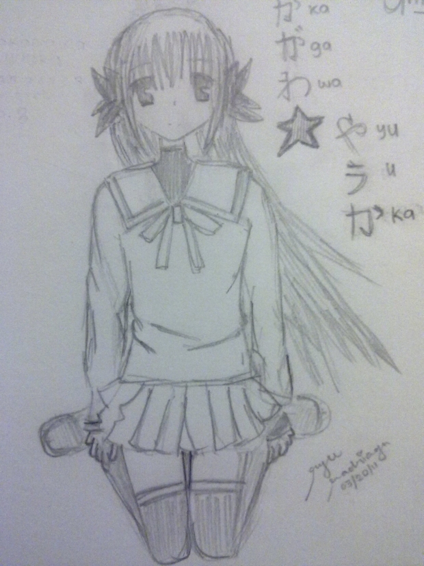 I was really attempting to draw a nun that time but as my hands moved and sketch *TADAA~~!* it turned into a school girl ( laughs ) maybe because I was at school that time ( ̄▽+ ̄*) ..hehe