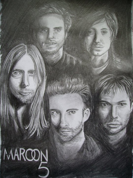My attempt to draw Maroon 5. Reference is from the newspaper. I think only 2 out of the 5 resemble slightly to the actual people. The rest looks childish, I know.