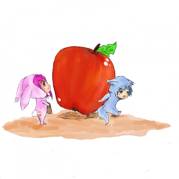 - apple, blue, bunny, chibi, pink, wolf