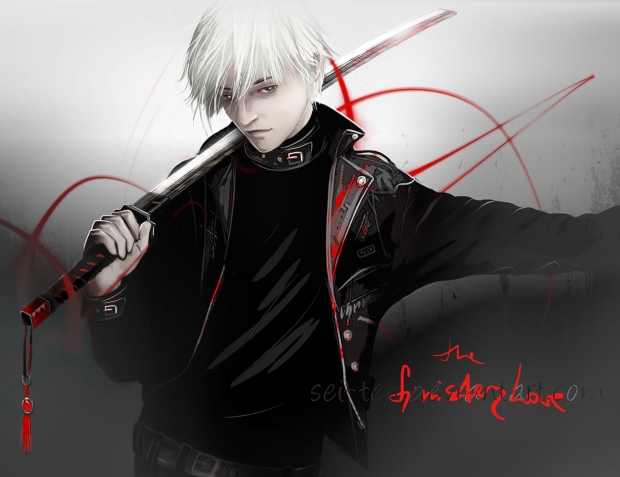 - black, cute, dark, guy, katana, male, man, original, portrait, red, sexy, sword