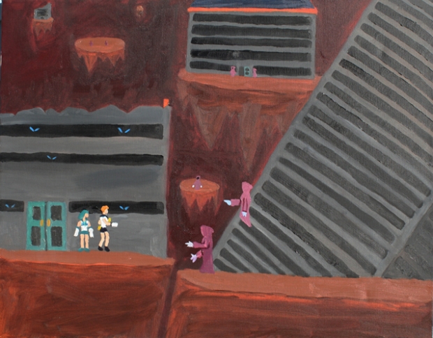 Here’s another one of the paintings I made last year. This one is connected to The Escape. It was done after The Escape, but takes place earlier in the story that I had half formed in my head. That’s how I come up with stories usually. I come up with the climax and/or ending first and go from there. In this scene, Uranus and Neptune encounter the residents of the horrible dimension they become trapped in, which I decided at the time were wraiths. It was around the time of finishing this painting when I got bored with the story and wanted to work on Angel 0. Enjoy.