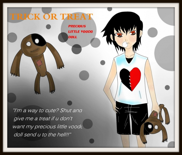 i'm always wearing ordinary costume for halloween but the importants its my doll. it's my symbol of halloween.