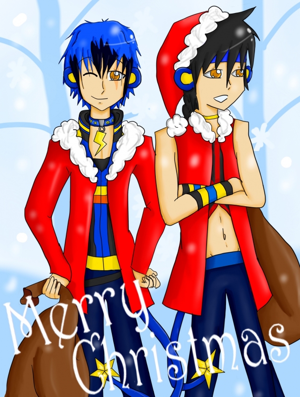 I've drawn your oc's Lux and Xio in festive/santa gear, I've tried to draw them as accurately from all the drawings I've seen. erm . . . I hope you like it and if you don't I am so so sorry!