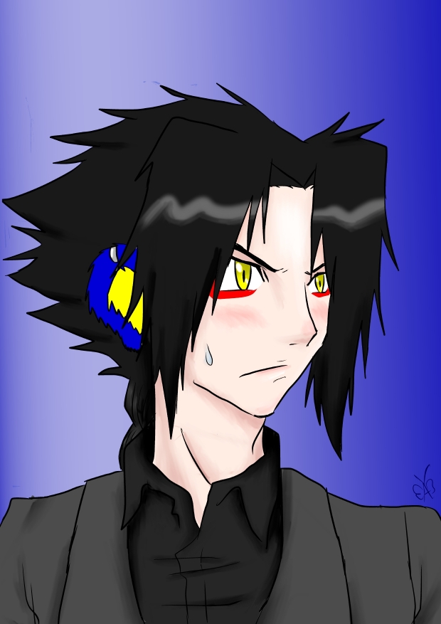 I tired to make a light blush on the cheeks nothing to big I can't imagine him completely red face XD