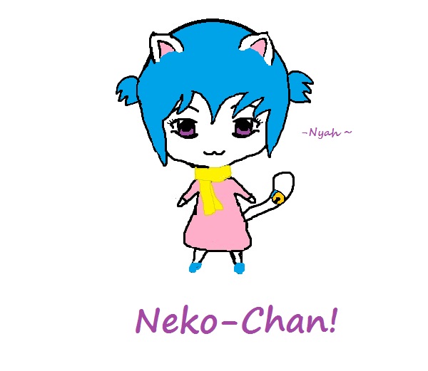 - cat girl, chibi, dress, ears, kawaii, kitty, neko-chan, nyah, pink, tail