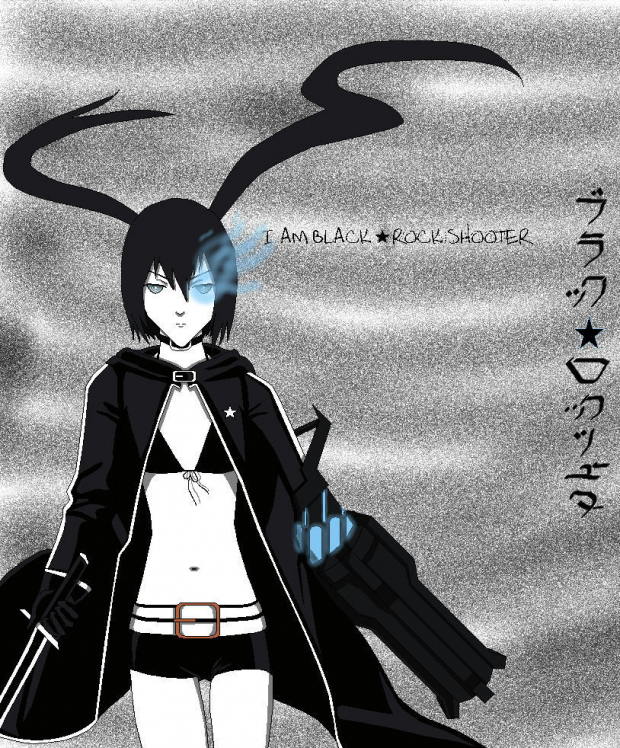 My final take on the black rock shooter character. Please ignore any inconsistencies because am not that knowledgeable about her weapons look or her appearance. Done with paint and tweaked with smooth draw for the effects. Black rock shooter rocks!^__^