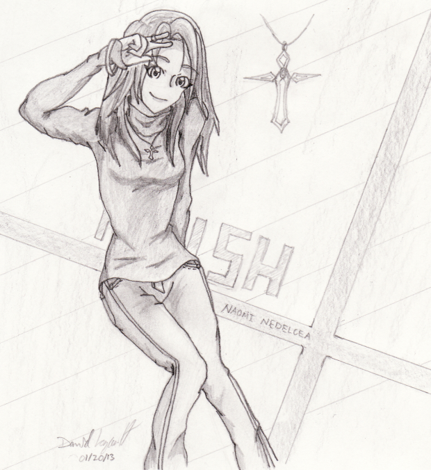 Well, after hours of sketching nothing but odd, failed stuff, I stumbled across a new artist that I like (Yoshiyuki Sadamoto, character designer for Evangelion), I managed to crank something out that I could present lol. I was going through some of his artbooks and found some character presentation similar to this. The title of my eventual manga "Rush" is suppose to be behind her, but I didn't pick the best place to put it lol.