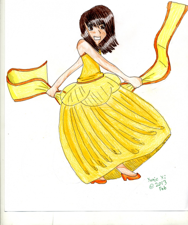 I'm a bit dissapointed with how I drew the hem of the dress, but I'm otherwise pretty proud of this drawing. Hope you like it, Sienna!