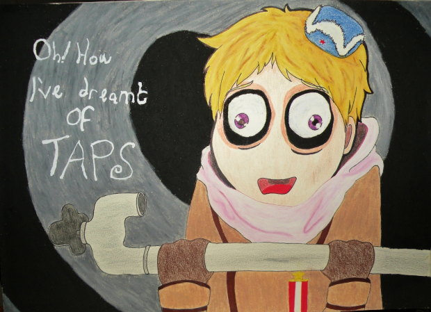 Gift for CasualViolencewithT. Done with Cray Pas, Sharpie, and WhiteOut. Character is Russia from "Hetalia" and the background, phrase, and facial expression are from "Salad Fingers." Used references from google.