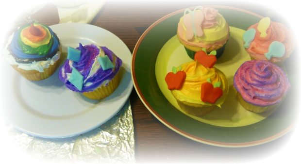 Cupcakes my sister and I made inspired by the main characters of mlp:fim