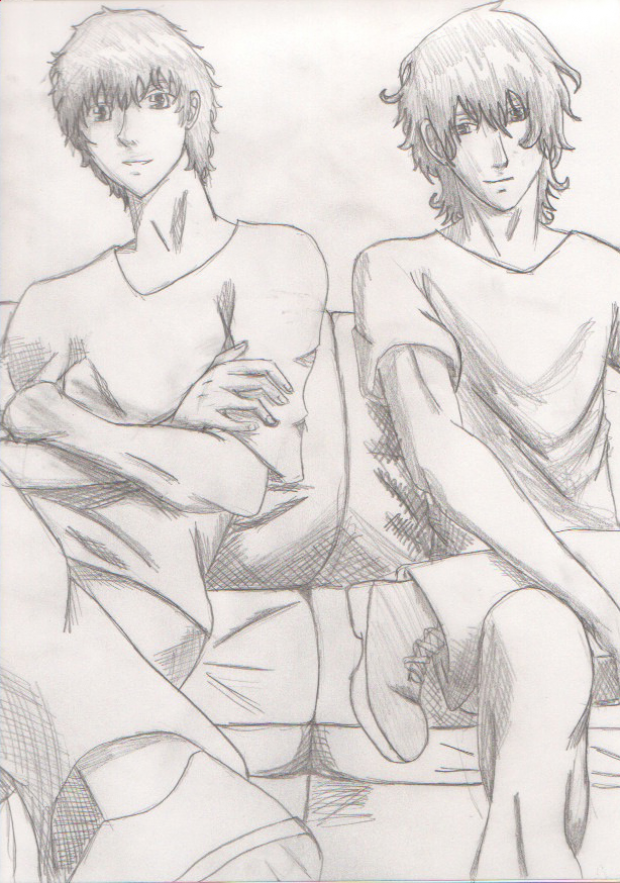 This is DangerousTinkerer (the one on the right) and his best friend from college (the one on the left) It's the sketch of them. I was planning on coloring this traditionally because I haven't done that in a while.