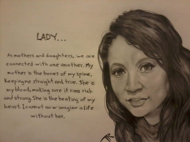 Just my cute little nickname for her! XD She is made of all kinds of greatness and love for me and my sisters. Anyway, this is the pic I decided to draw for her on Mother's Day. I know it's ridiculous that it's been over a month and I'm just NOW posting, but I've had like NO COMPUTER ACCESS since I came back to Texas and I plan to make use of this small window of opportuntiy. As always, enjoy! ![]()