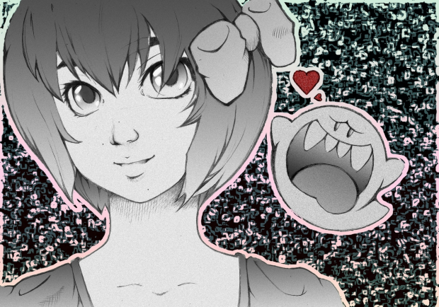 - doodle, ghost, girl, heart, love, mario, mouth, pretty