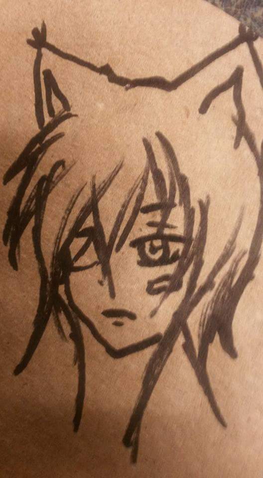 So sitting on lunch in the breakroom with a coworker. She is doodling on a paper towel with a marker and asks if I will draw something. She likes my lil drawings cause I have filled my locker with them and she has seen. So she passes me a piece of paper towel and I pull out my marker and behold...it looks like Ritsuka.
