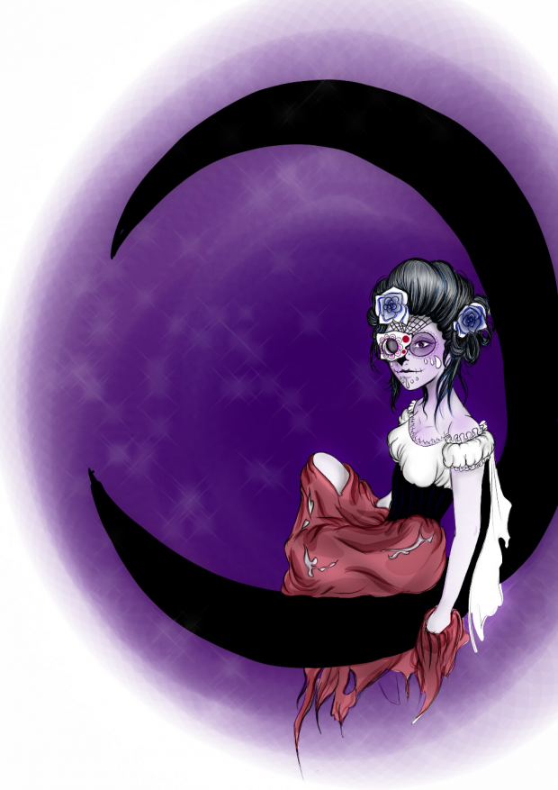 - day of the dead, girl, girl on the moon, moon, nikkeh, nikkeh09, tattoo