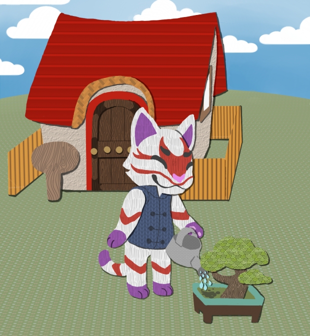 To unwind today, I drew a little fake-papercraft scene with Kabuki from Animal Crossing <3 this was a fun exercise. I don't usually work with lineless things.