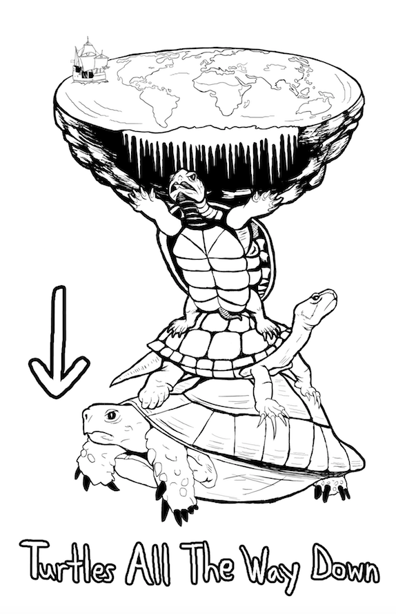 A commissioned artwork that someone wanted for their shirt based on a old expression about the world turtles holding the earth.