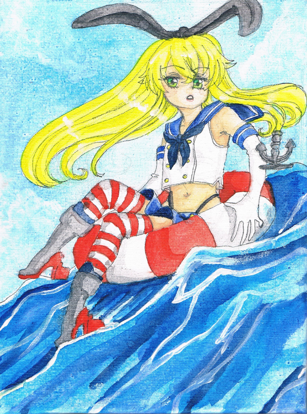- female, kancolle, kantai collection, shimakaze, watercolor