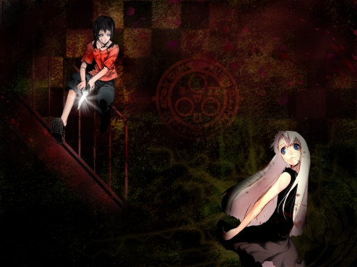 My entry for the Creepy Things Challenge. The girls are Naoto and Nill from the Dogs series.