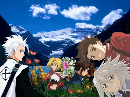 - ayumi narumi, edward elric, genis sage, hitsugaya, lloyd irving, mountains