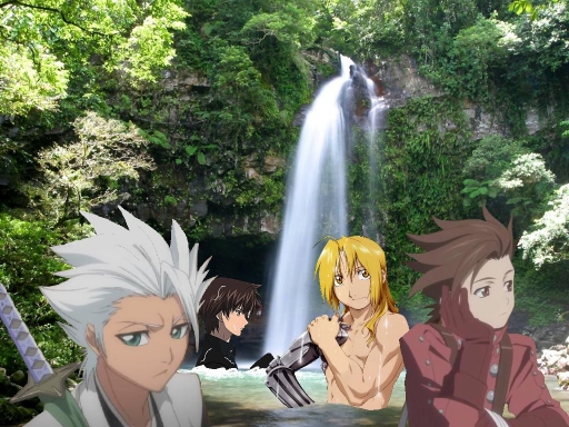 - edward elric, hitsugaya, kazuma yagami, lloyd irving, waterfall
