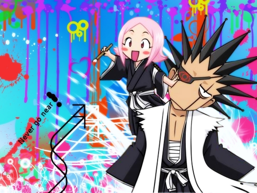 - bleach, colorful, kenpachi, paint, shinigami, yachiru, zaraki
