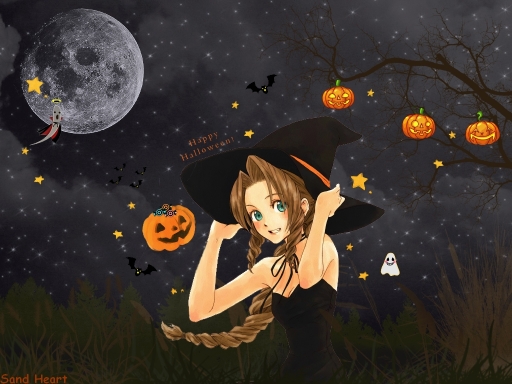 - aerith, final fantasy vii, halloween, happy, moon