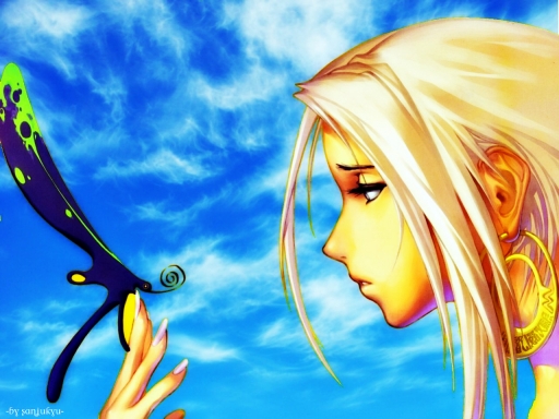 - butterfly, clouds, girl, hyung tae kim, oxide, sky