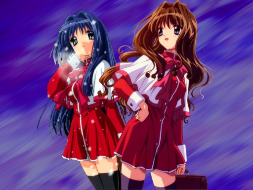 Another Kanon wallpaper of Nayuki Minase and Kaori Misaka, the two are best friends and are in the same class together.