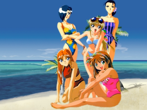 A wallpaper of the Blue Seed girls at the beach.