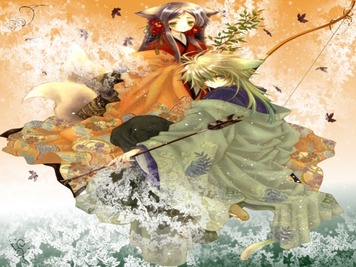 - arrow, fall, fox, kitsune, leaves, sword, tohru azumi