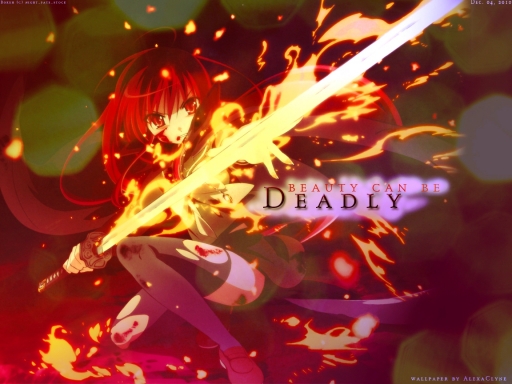 Shana! :DDDrnrnI had a hard time deciding what text to put, I even used the dictionary. xDrnrnFire can look beautiful and alluring, but is also powerful and dangerous. Like, women perhaps? xD Shana may look all cute and adorable, but is quite a fighter, and not someone who you could mess up with.
