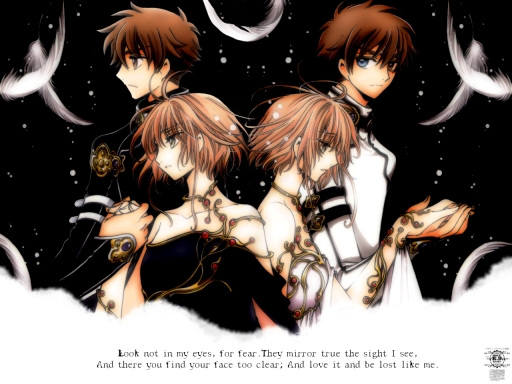 - black and white, CLAMP, clones, outfit, sakura, syaoran, tsubasa chronicles