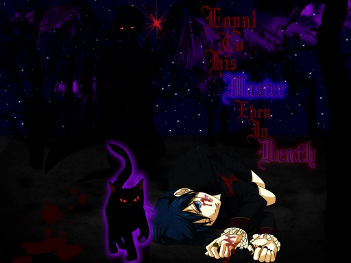 - attack, black butler, blue, cat, cemeter, ciel phantomhive, death, graveyard, kuroshitsuji, loyalty, night, purple, red, sebastian michaelis