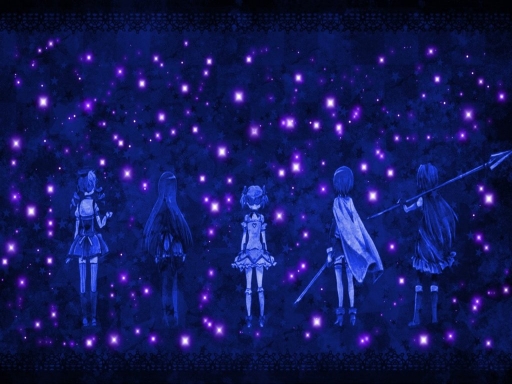 - homura, kyoko, madoka, mahou shoujo madoka magica, mami, night, puella magi madoka magica, sayaka, stars