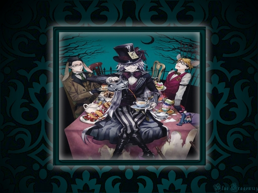 - alice in wonderland, black, black butler, party, tea, undertaker
