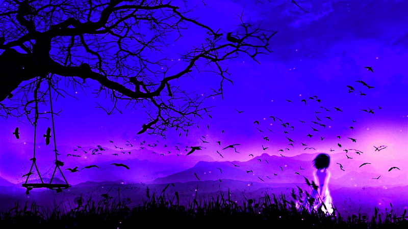 - anime, birds, cobwebs, girl, sky, spiders