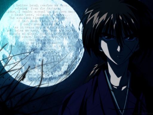 - battousai, blue, kenshin, moon, rurouni kenshin